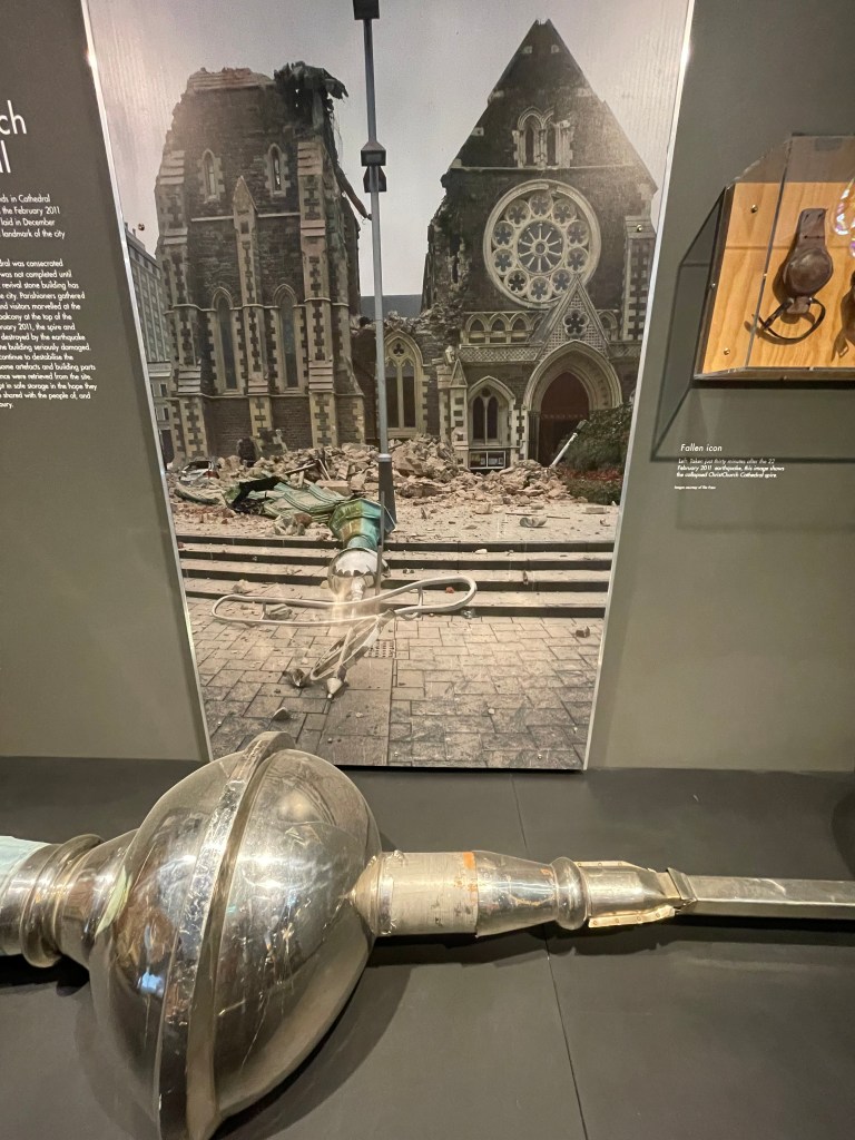 We boarded the city circle tram seeking a good coffee stop. We weren’t disappointed, stop 18 was New Regent Street, a very quaint street with colourful 2 storey houses and shops where the tram drives down the middle of the road. Suitably buzzing after our coffees and muffin, we walked back to the town centre, and rode another tram through the shopping precinct. Great to hear the commentary from people who’d been witness to the 2011 earthquake. They pointed out which places had survived from the 90% destruction of the city. We decided to visit the Quake Museum. I felt it would be triggering for a local but maybe after 15 years they’re ok. The videos, interviews, photos, remnants of structures, all combined as a lasting memory of just how severe the quake was and how resilient the people have been to rebuild their city. Glad we chose to go there.