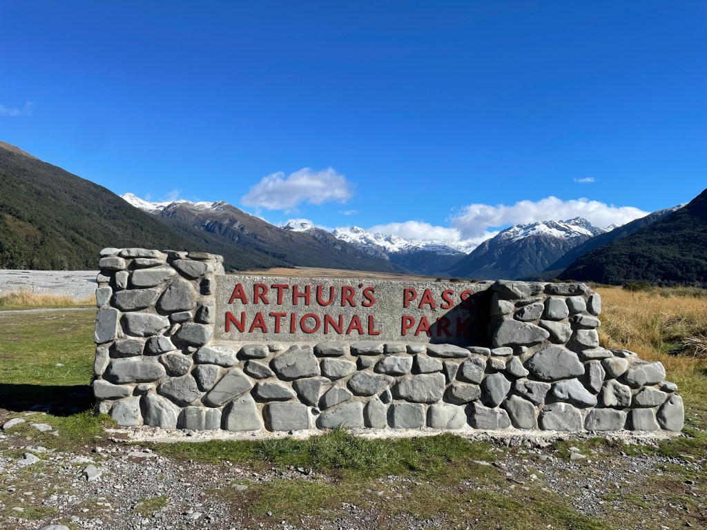 After the prolonged briefing, going bit by bit through the van with a lovely German backpacker, we finally set off towards Arthur’s Pass. Below the Pass we stopped for the night in a park, to power up our battery, and learn how to make the bed, switch things on and off, all pretty straight forward actually! The cold night taught us to close the vent over the bed and add an extra blanket.