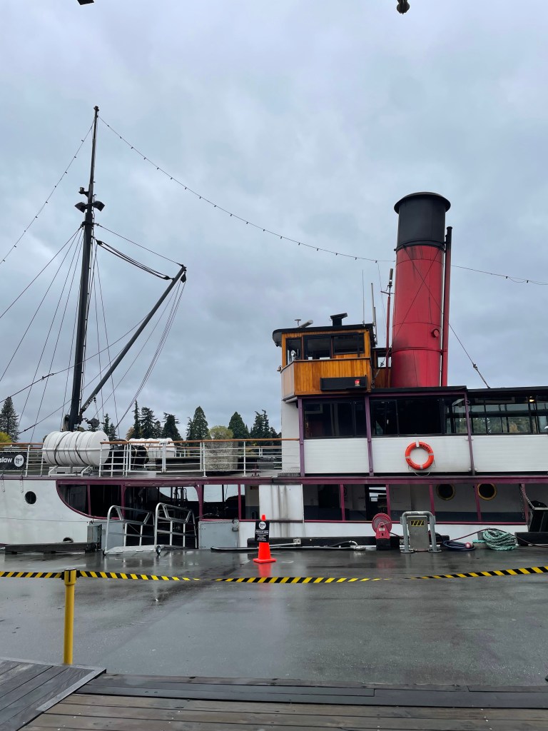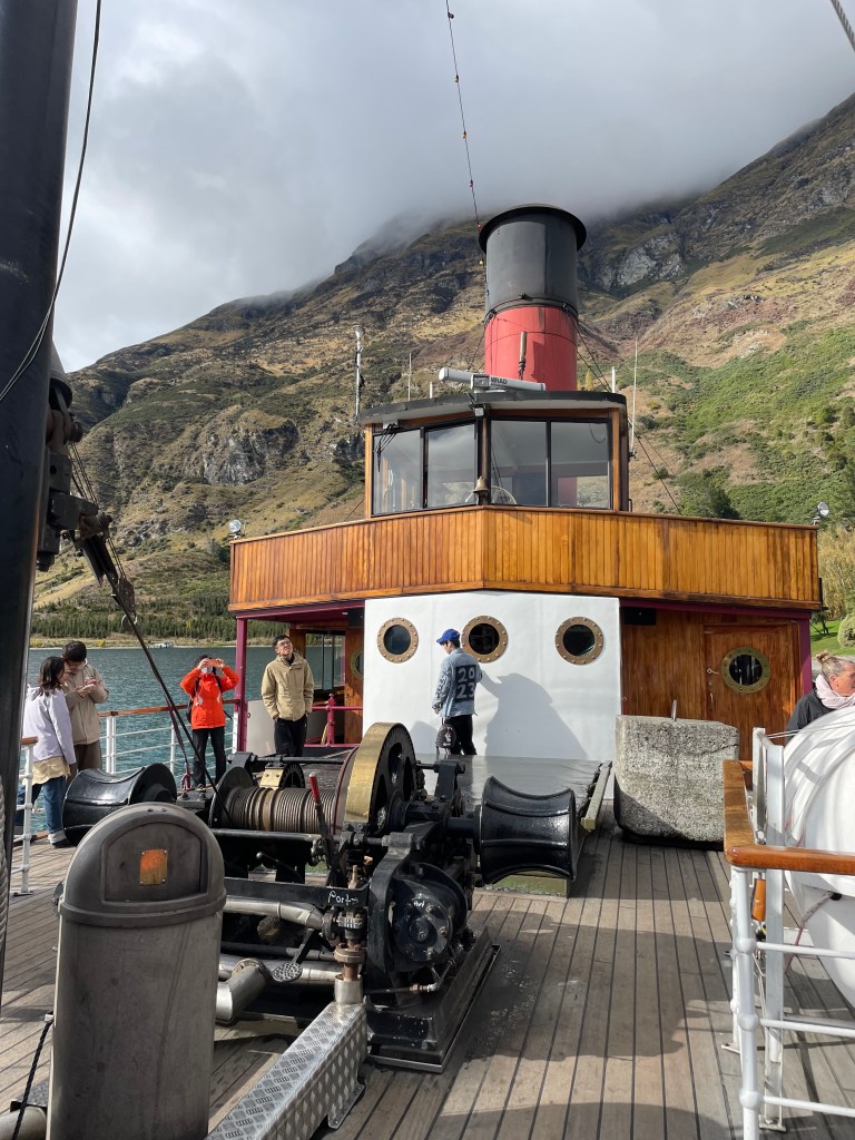 Queenstown. What a lovely town, as trendy as Wanaka, much bigger and located on Lake Wakatipu. Here the snow season hadn’t begun but all the adventure activities were in full swing. It was still raining and very cold but we decided to take a slow cruise on the lake in the old TSS Earnslaw, a Twin Screw Steamer. Her maidan voyage was in 1912, with an initial passenger capacity of 1,035. She was affectionately called the “Lady of the Lake”.